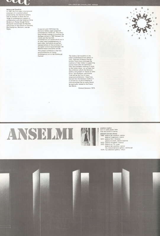 Edinburgh Arts 1974 Anselmo Anselmi Galleria del Cavallino