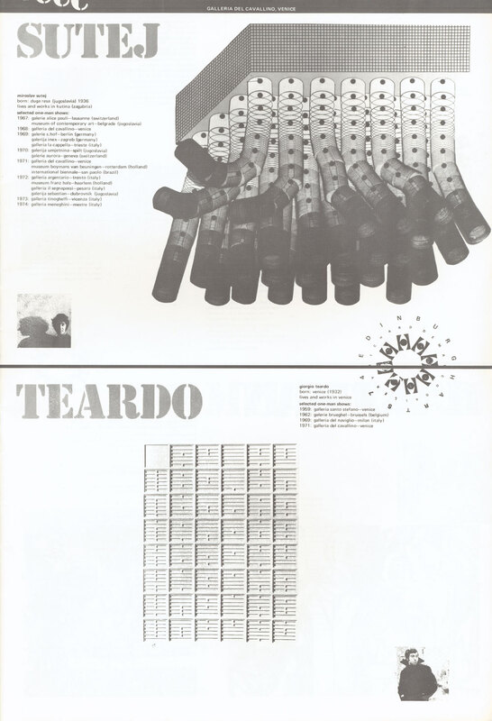 19 July - 7 September 1974. Catalogue. PageĀ 7 of 21. Edinburgh Arts 1974. Exhibitions and events. Galleria del Cavallino artists. Miroslav Sutej. Giorgio Teardo.