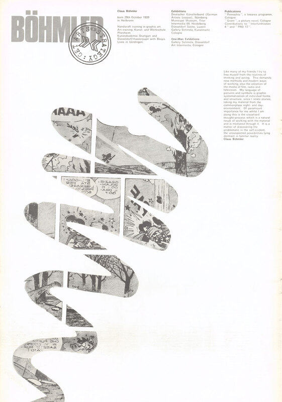 23 August - 12 September 1970. Exhibition catalogue. Page 10 of 42. Strategy: Get Arts (contemporary art from Dusseldorf, Germany) presented by the RDG in association with Kunsthalle Dusseldorf, at Edinburgh College of Art, for the Edinburgh International Festival 1970. Claus Bohmler.
