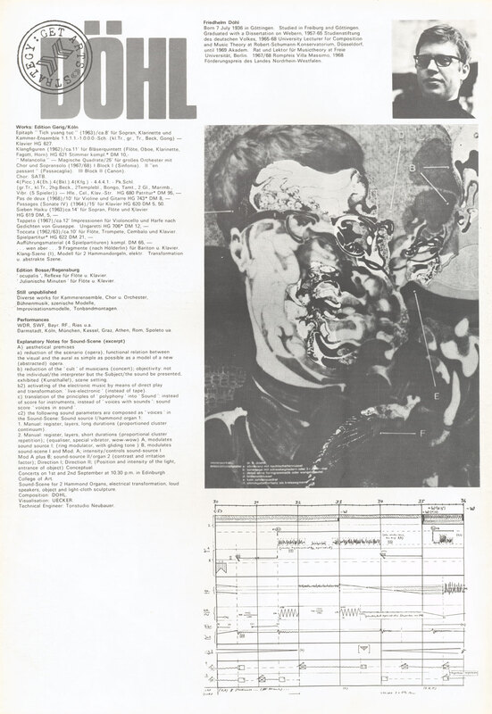 23 August - 12 September 1970. Exhibition catalogue. Page 14 of 42. Strategy: Get Arts (contemporary art from Dusseldorf, Germany) presented by the RDG in association with Kunsthalle Dusseldorf, at Edinburgh College of Art, for the Edinburgh International Festival 1970. Friedhelm Dohl.
