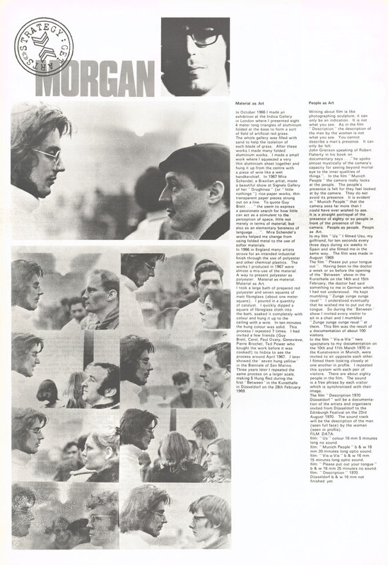 23 August - 12 September 1970. Exhibition catalogue. Page 28 of 42. Strategy: Get Arts (contemporary art from Dusseldorf, Germany) presented by the RDG in association with Kunsthalle Dusseldorf, at Edinburgh College of Art, for the Edinburgh International Festival 1970. Tony Morgan.