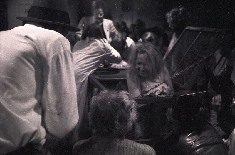 August/ September 1973. Joseph Beuys, left, at Tadeusz Kantor's Cricot 2 Theatre production of Lovelies and Dowdies at Forrest Hill Poorhouse, Edinburgh. Zofia Kalinska, centre. Edinburgh Arts 1973.