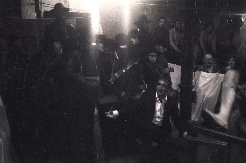 August/ September 1973. Audience for Tadeusz Kantor's Cricot 2 Theatre production of Lovelies and Dowdies at Forrest Hill Poorhouse, Edinburgh. Edinburgh Arts 1973. Kantor, centre.