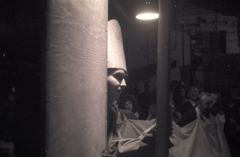 August/ September 1973. Audience for Tadeusz Kantor's Cricot 2 Theatre production of Lovelies and Dowdies at Forrest Hill Poorhouse, Edinburgh. Edinburgh Arts 1973.