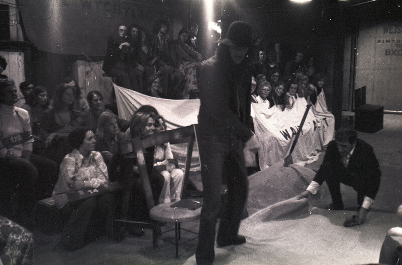August/ September 1973. Tadeusz Kantor's Cricot 2 Theatre production of Lovelies and Dowdies at Forrest Hill Poorhouse, Edinburgh. Edinburgh Arts 1973. Kantor, right.