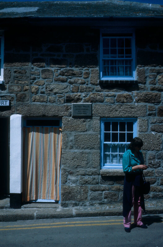 15 - 21 July 1980. German artist Dorothee Bouchard at the former home of Cornish artist and mariner Alfred Wallis (1855-1942) at 3 Back Road West, St. Ives, Cornwall, England. Edinburgh Arts 1980.