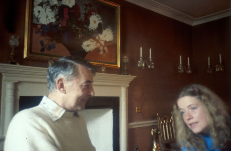 15 August 1980. Edinburgh Arts 1980. Wester Ross, Scotland. Visit to Little Loch Broom and Dundonnell House, home of brothers Bunny Roger (left) and Alan Roger. Jane MacAllister, right. (Lecture by Bunny and Alan Rogers on the art collection, aviary and gardens of Dundonnell House).