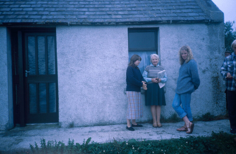 15 - 18 August 1980. Edinburgh Arts participants Jeanne Sanschagrin (left) and Jane MacAllister (right) with poet and filmmaker Margaret Tait (centre) at her home on Orkney, Scotland. Edinburgh Arts 1980.