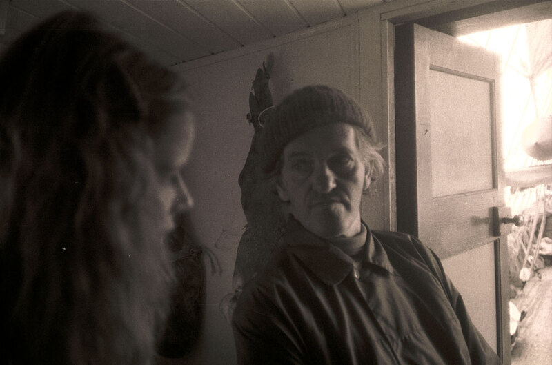 16 - 18 August 1980. Poet George Mackay Brown (right) and Edinburgh Arts participant Jane MacAllister on the 'Marques' sailing ship, Orkney Islands, Scotland. Edinburgh Arts 1980 sea-voyage on the 'Marques'.