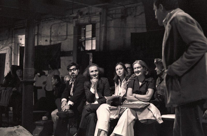 August/September 1973. Lecture/workshop by Tadeusz KantorĀ at Forrest Hill Poorhouse, Edinburgh (the venue for Kantor's Cricot 2 Theatre production of Lovelies and Dowdies). Edinburgh Arts 1973. Seated front, R-L: Cordelia Oliver, Jenny Agutter, Richard Demarco. Kantor standing, right.