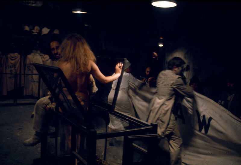 August/ September 1973. Performance of Lovelies and Dowdies by Tadeusz Kantor's Cricot 2 theatre company at Forrest Hill Poorhouse, Edinburgh. Edinburgh Arts 1973.