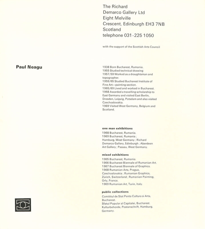 1969. Exhibition Catalogue/ Brochure. Page 2/6. Six One-Man Shows: Paul Neagu.