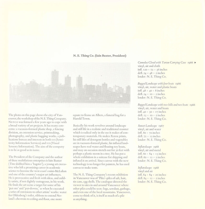18 August - 7 September 1968. Exhibition catalogue (extract). Page 9 of 10 . Canada 101. Presented at Edinburgh College of Art by the RDG in association with the Edinburgh Festival Society and the Canada Council, for the Edinburgh International Festival. N.E. Thing Co. (Iain Baxter, President).