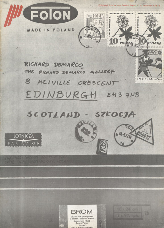 20 August -9 September 1972. Exhibition catalogue (cover). Page 1 of 47. Atelier '72 (contemporary Polish art) presented by the RDG at 8 Melville Crescent, Edinburgh, in collaboration with the Lodz Museum of Art (Poland), for the Edinburgh International Festival.