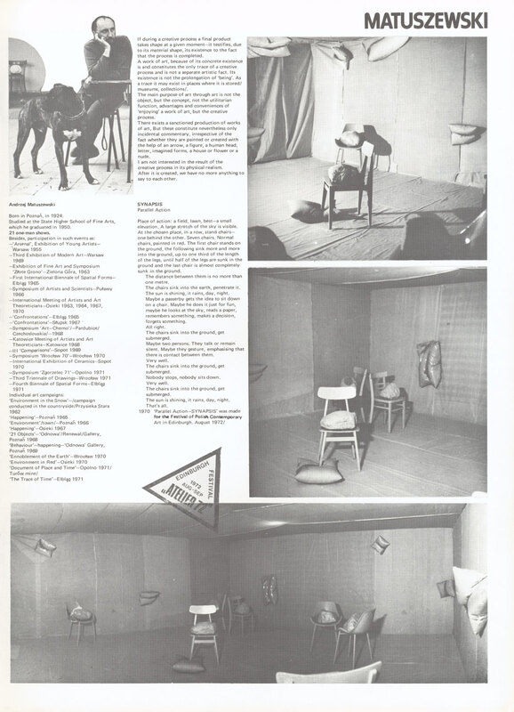 20 August -9 September 1972. Exhibition catalogue. Page 29 of 47. Atelier '72 (contemporary Polish art) presented by the RDG at 8 Melville Crescent, Edinburgh, in collaboration with the Lodz Museum of Art (Poland), for the Edinburgh International Festival. Andrzej Matuszewski.