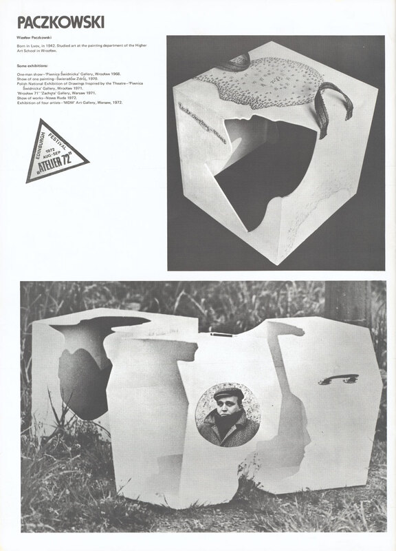 20 August -9 September 1972. Exhibition catalogue. Page 34 of 47. Atelier '72 (contemporary Polish art) presented by the RDG at 8 Melville Crescent, Edinburgh, in collaboration with the Lodz Museum of Art (Poland), for the Edinburgh International Festival. Wieslaw Paczkowski.