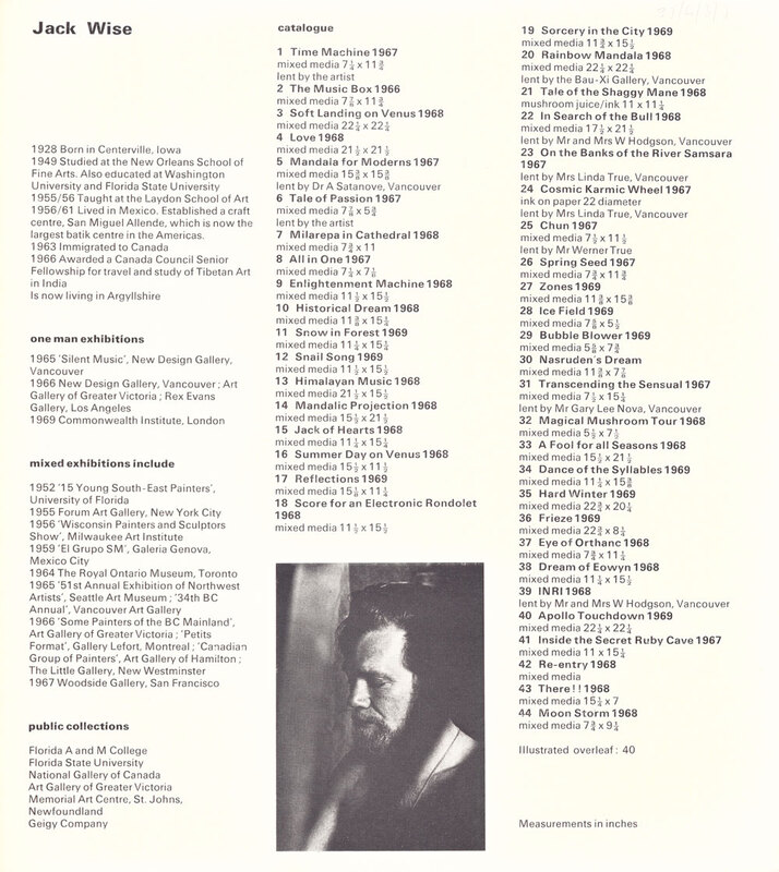 1969. Exhibition Catalogue/ Card (verso). Jack Wise. Two Canadians and Three Scots exhibition presented by the RDG.