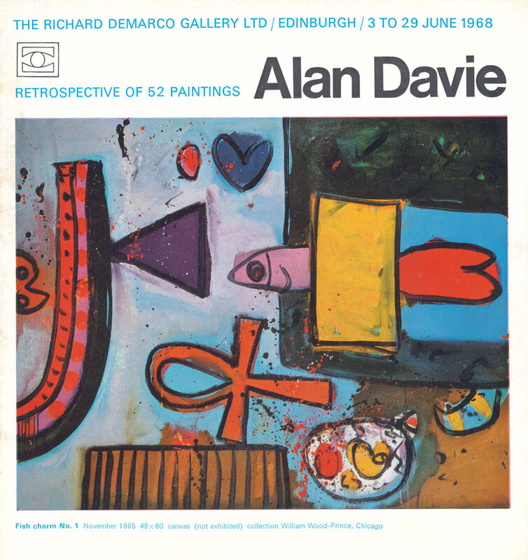 3 - 29 June 1968. Exhibition catalogue cover. Page 1 of 2. Alan Davie retrospective exhibition of 52 paintings, at the RDG, 8 Melville Crescent, Edinburgh.